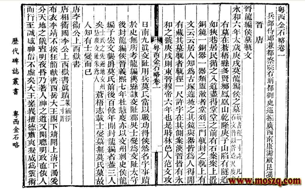 《粤西金石略卷一》记录