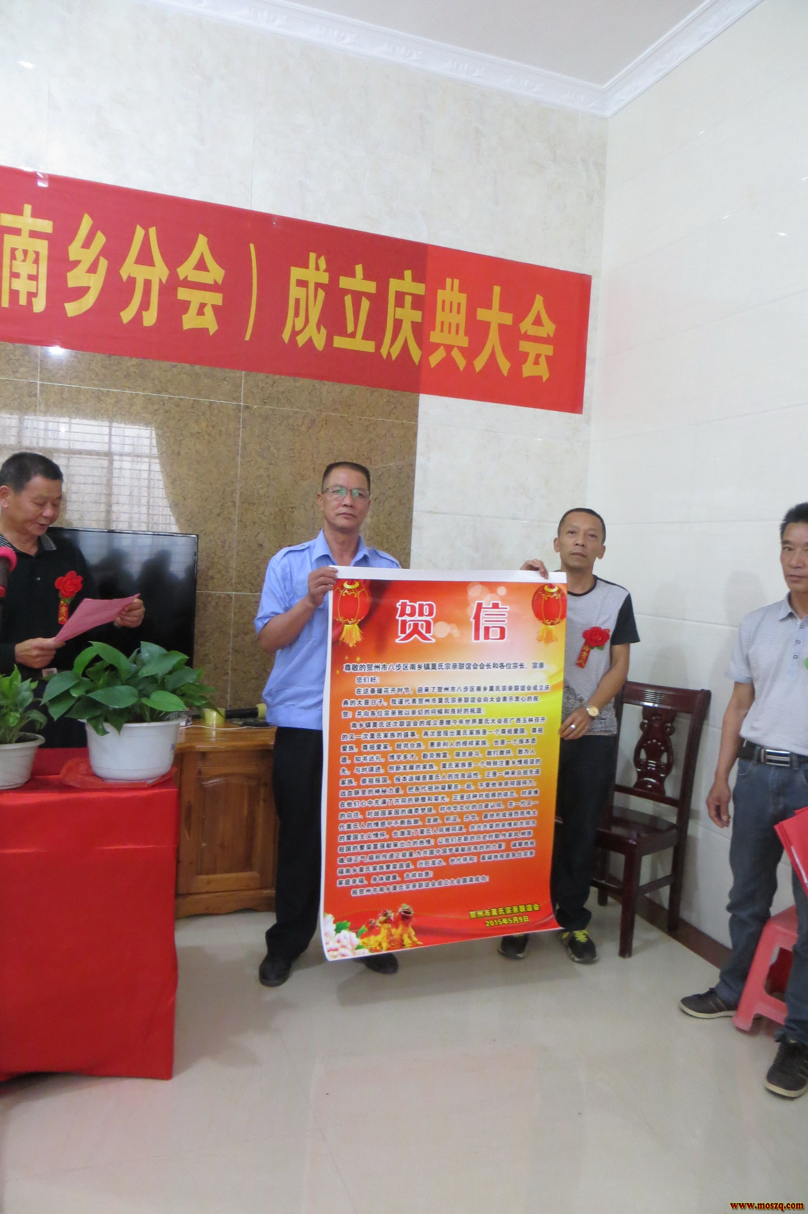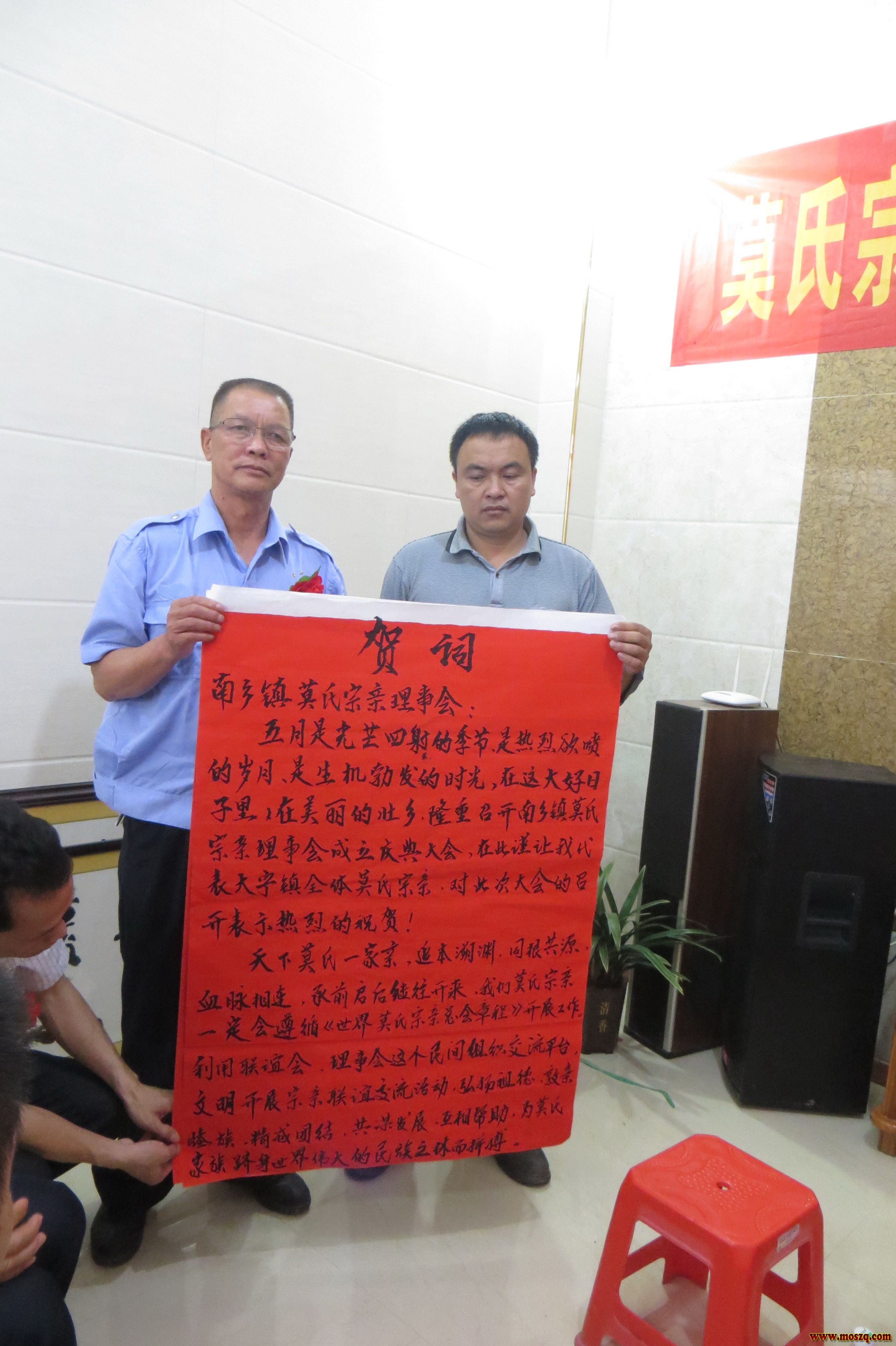 贺州市南乡莫氏宗亲理事会成立活动剪影 理事会成立筹备会 时间:2015 年 4 月 5 日 庆典大会筹委会成员会议 时间:2015 年 5 月 4 日 南乡莫氏宗亲理事会正式挂牌成立 时间:2015 年 5 月 9 日 8 时 主持人莫衍文宣布南乡镇莫氏宗亲理事会成立庆典大会正式开始 揭牌领导入场 揭牌仪式 贺州市、广东连山县、昭平、大宁等 莫氏兄弟前来祝贺并赠送牌匾 宣读贺信 宣读贺信 南乡镇莫氏宗亲理事会成立庆典大会现场 南乡镇莫氏宗亲理事会莫衍文主持大会 南乡镇莫氏宗亲理事会会长莫衍保作大会工作报告 南乡镇莫氏宗亲理事会莫荣刚宣读理事会章程(审议稿) 广西贺州市莫氏宗亲联谊会领导讲话致辞 广东连山县莫氏宗亲理事会领导讲话致辞 广西贺州市昭平县莫氏宗亲联谊会领导讲话致辞 贺州市八步区大宁镇莫氏宗亲理事会领导讲话致辞 会场一角 会场一角 会场自由讨论时间 合影留念 合影留念 前往贺州市八步区南乡温泉旅游度假村考察 南乡温泉旅游度假村风景 南乡温泉旅游度假村风景 南乡温泉旅游度假村风景 |